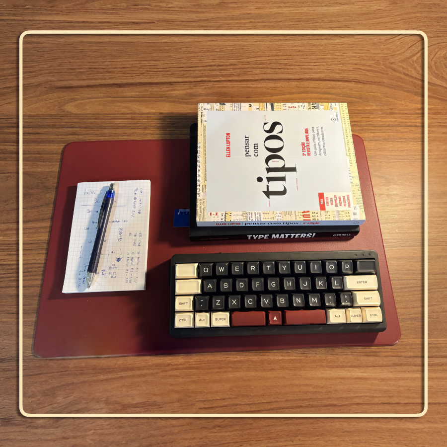 Meu teclado TH40, ao lado das anotações que eu fiz durante sua configuração.
